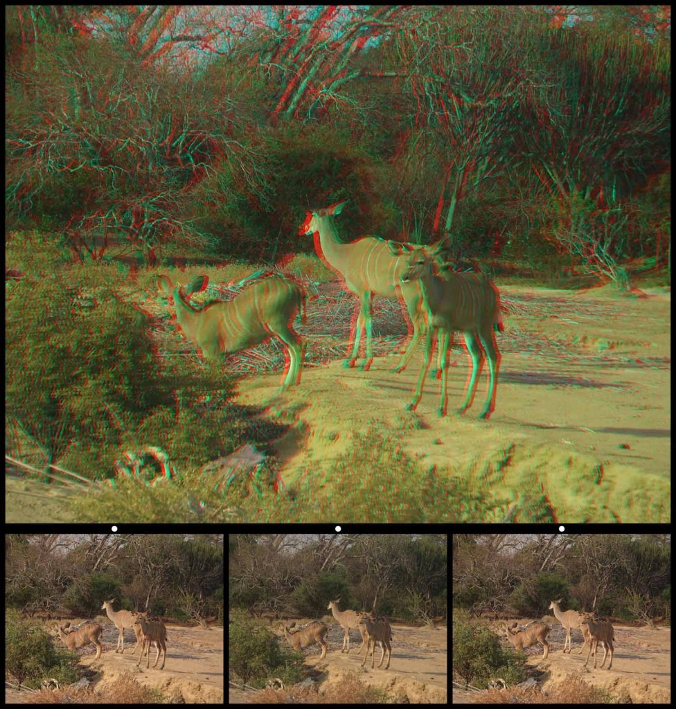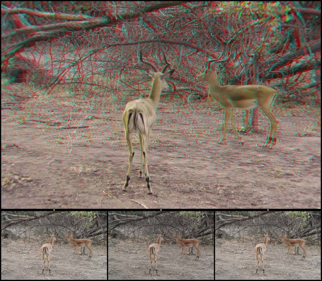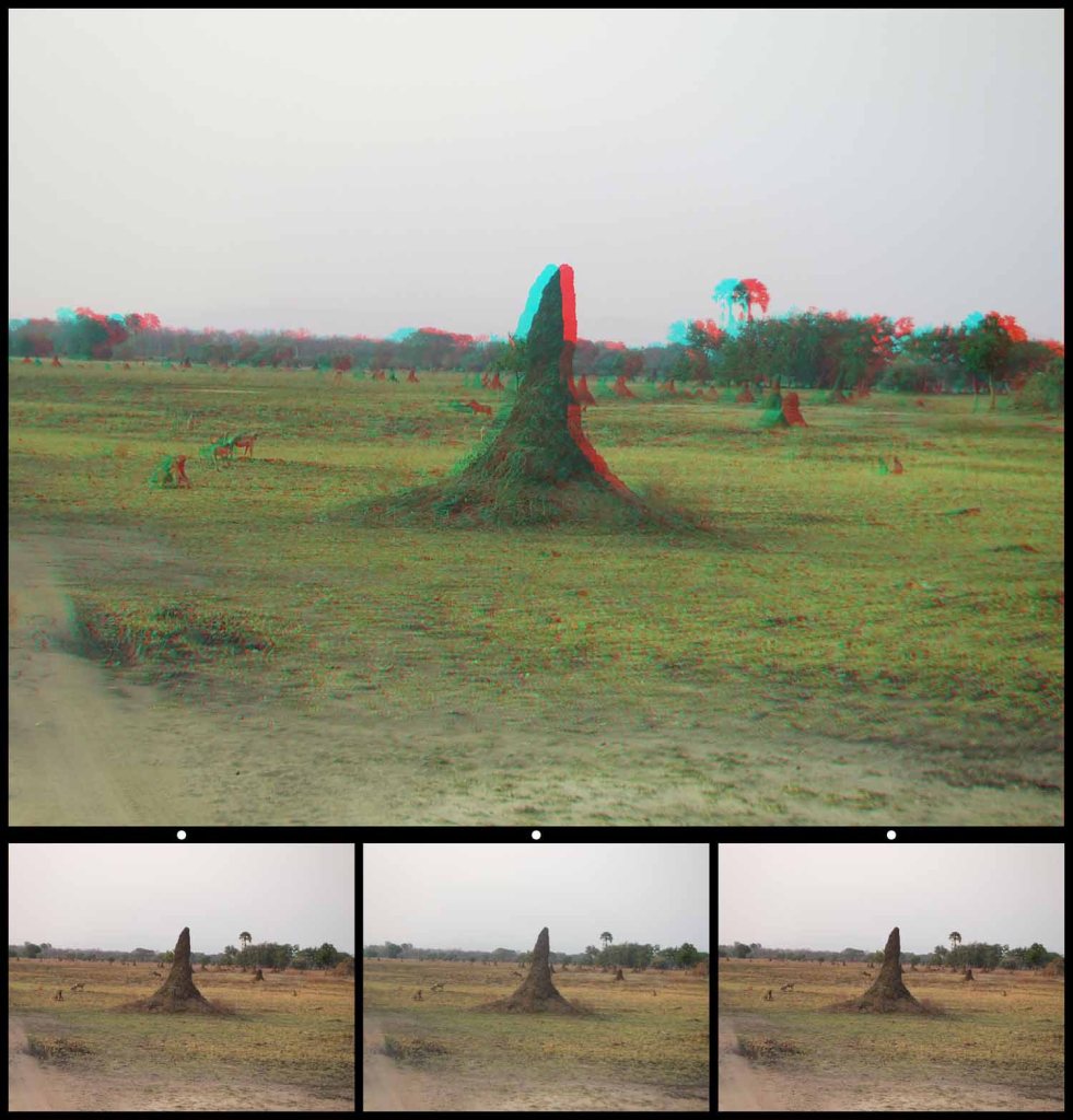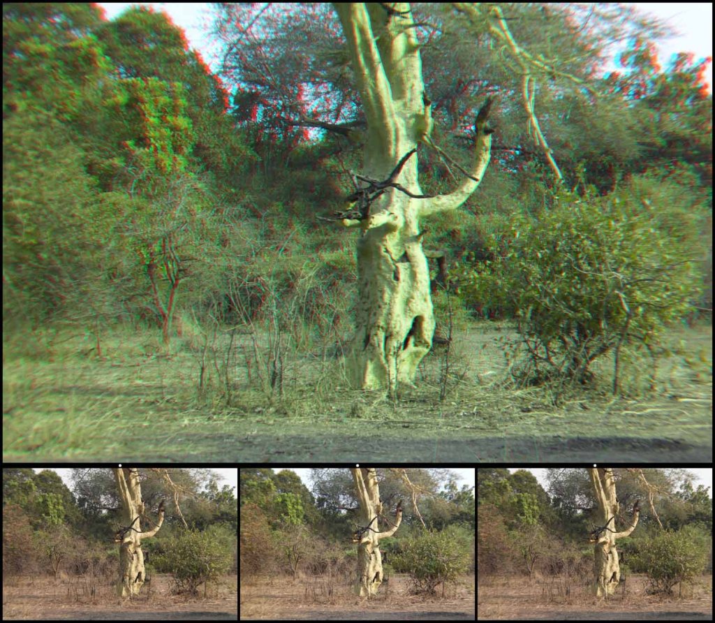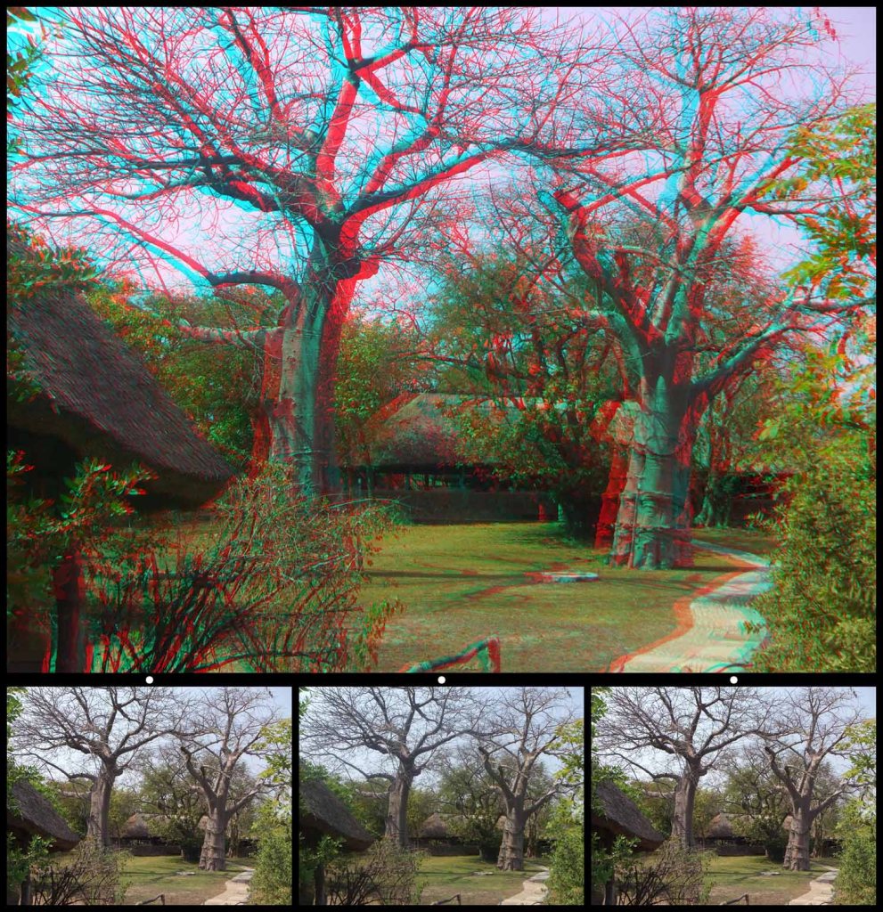 These images, taken in Malawi and Zambia, are a combination of anaglyph and the so-called universal Left-Right-Left images. The lower left pair are for parallel viewing and the lower right pair are for cross-eyed viewing. You will need red/cyan glasses to see the top anaglyph images in 3D.