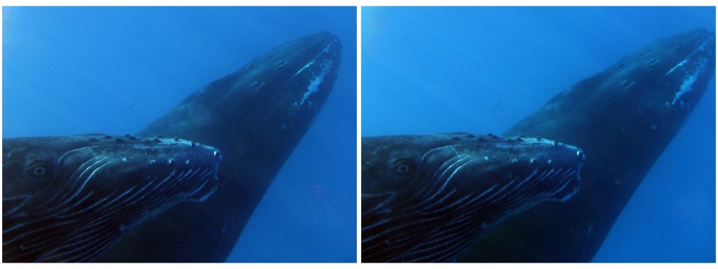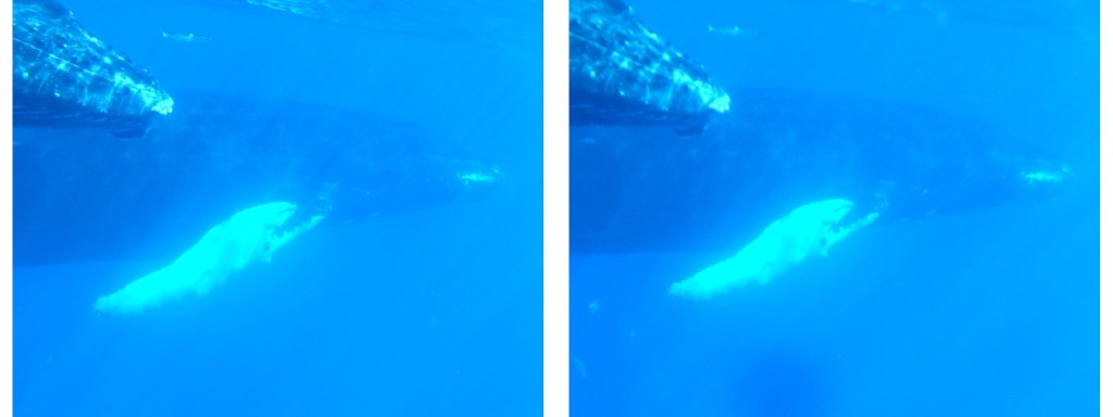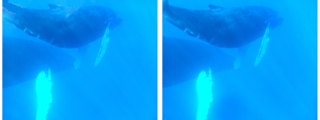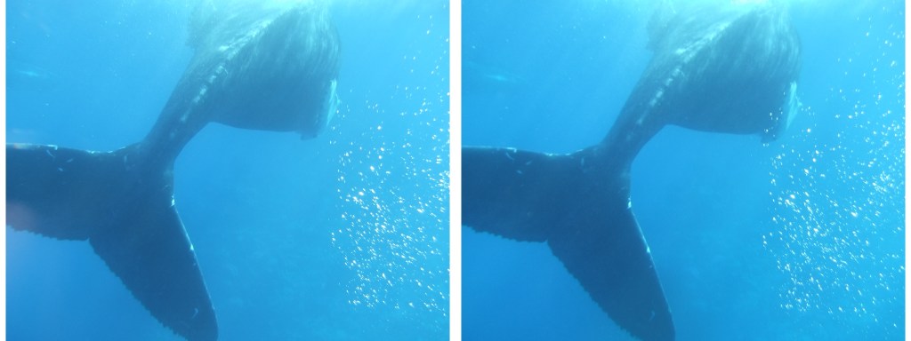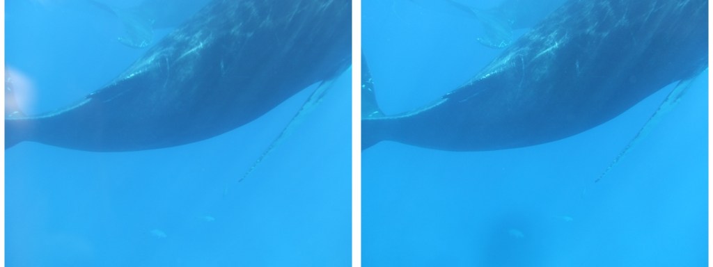 When whale watching from a boat, you only see a small part of the whale (unless it is breaching); but encountering them underwater is really amazing, you appreciate just how enormous they are.