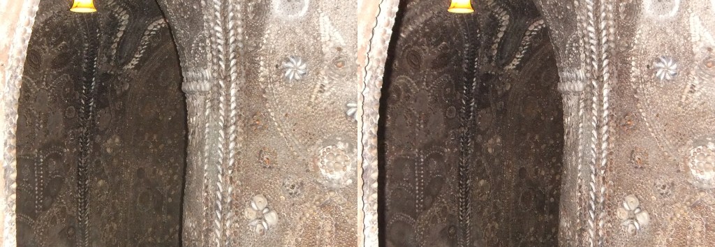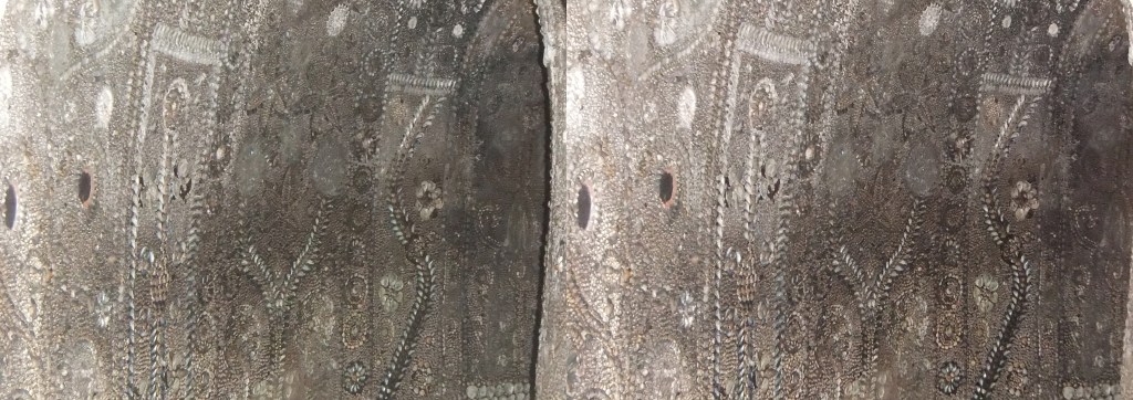 Margate Grotto is an enigma; discovered by accident in 1835, but no details of its construction and origin are known. It is 32 metres long and consists of narrow winding passages all covered by shells of local origin, containing about 4.6 million in total. It’s an amazing place to explore. It’s rather dark and is a challenge for photographers, but I hope that the images will encourage you to visit. For more information see https://www.shellgrotto.co.uk/.
