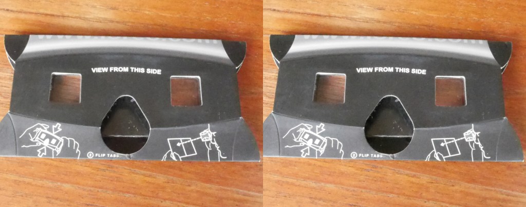 Some images are red/cyan anaglyphs, which may be familiar to most people from cinemas in the 1960s. Unfortunately, no anaglyph system yet made can reproduce colour properly; for example, pink orchids come out a pretty blue colour when viewed by red/cyan glasses. However, since anaglyph glasses are fairly common, I have included some images to be viewed by this technique.